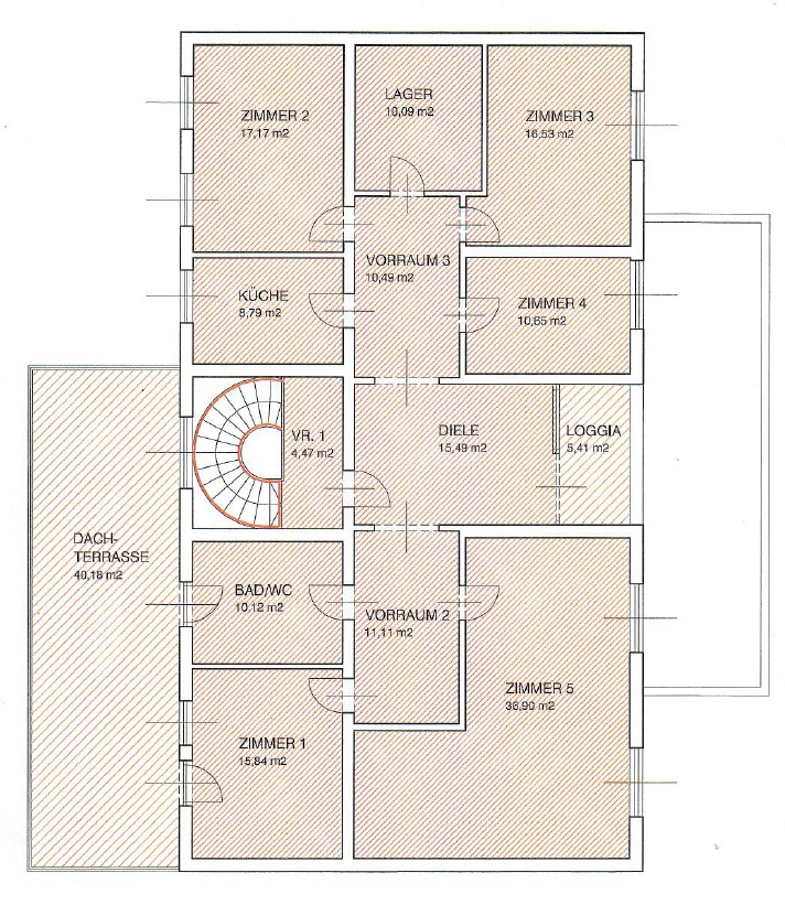 Insgesamt stehen fünf helle Zimmer zur Verfügung, die sich flexibel als Schlafzimmer, Kinderzimmer, Homeoffice oder Hobbyräume einrichten lassen. Ein praktischer Abstell- bzw. Lagerraum, eine Küche sowie eine Sanitäreinheit runden das Raumangebot ab. Letztere wurde im Rahmen der Nutzung als Büro zu einer WC-Anlage mit getrennten WCs und einem Bereich mit Waschtisch umfunktioniert. Selbstverständlich sind alles Anschlüsse vorhanden, sodass der Raum zu einem Bad rückgebaut werden kann.