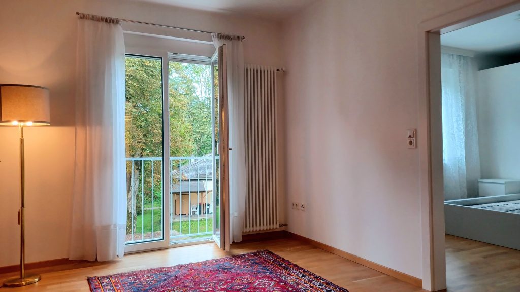 Des Weiteren ist der Wohnung ein Bereich im Keller, sowie ein französischer Balkon mit Blick in den Park zugehörig. Ebenso befindet sich im Keller eine allgemeine Waschküche. Kostenfreie Parkflächen sind direkt vor dem Haus zu finden.